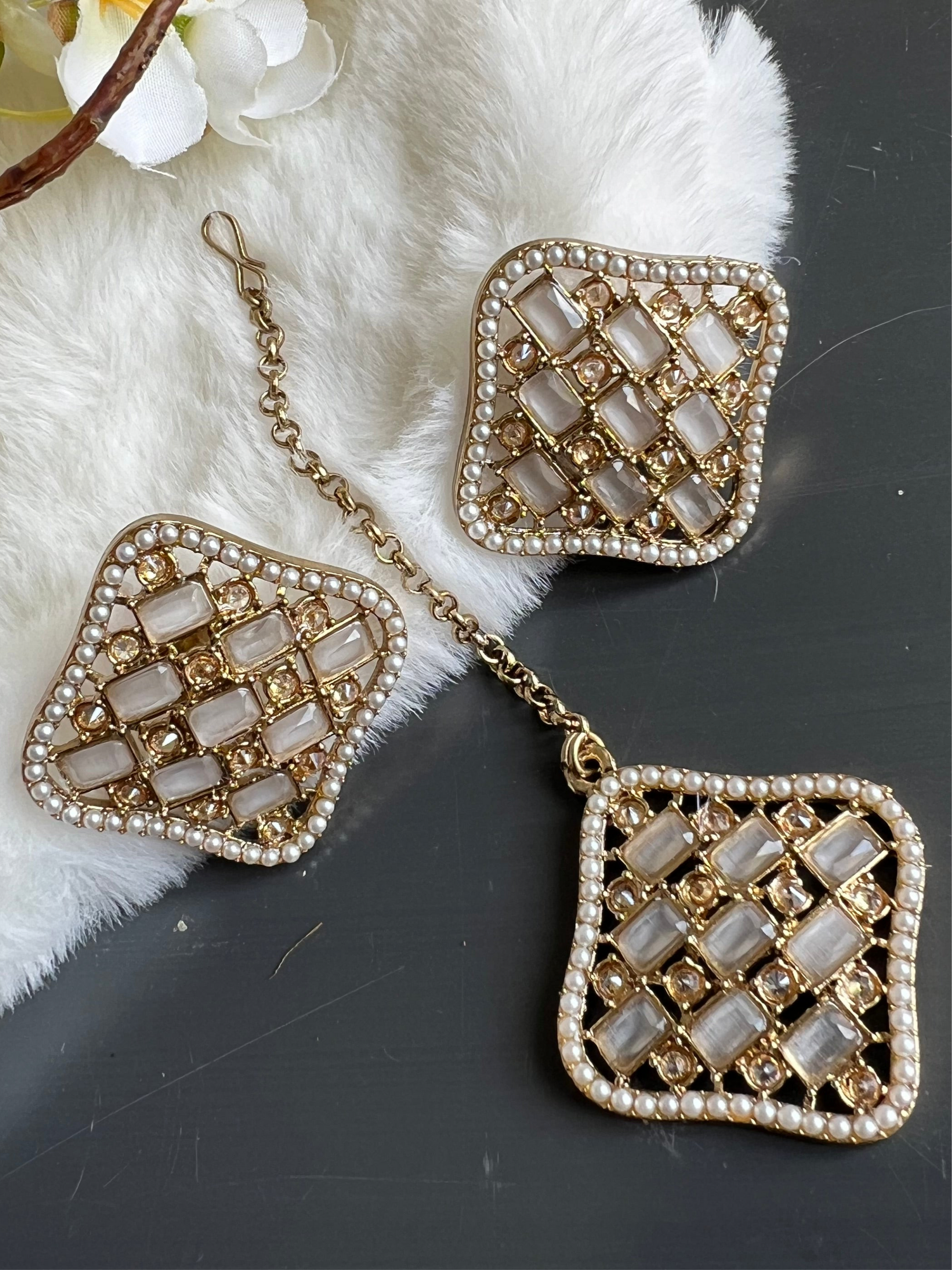 Beautiful polki medium size studs with maang tikka