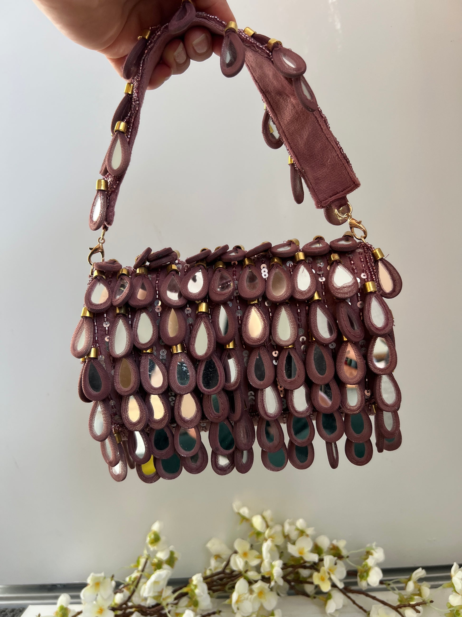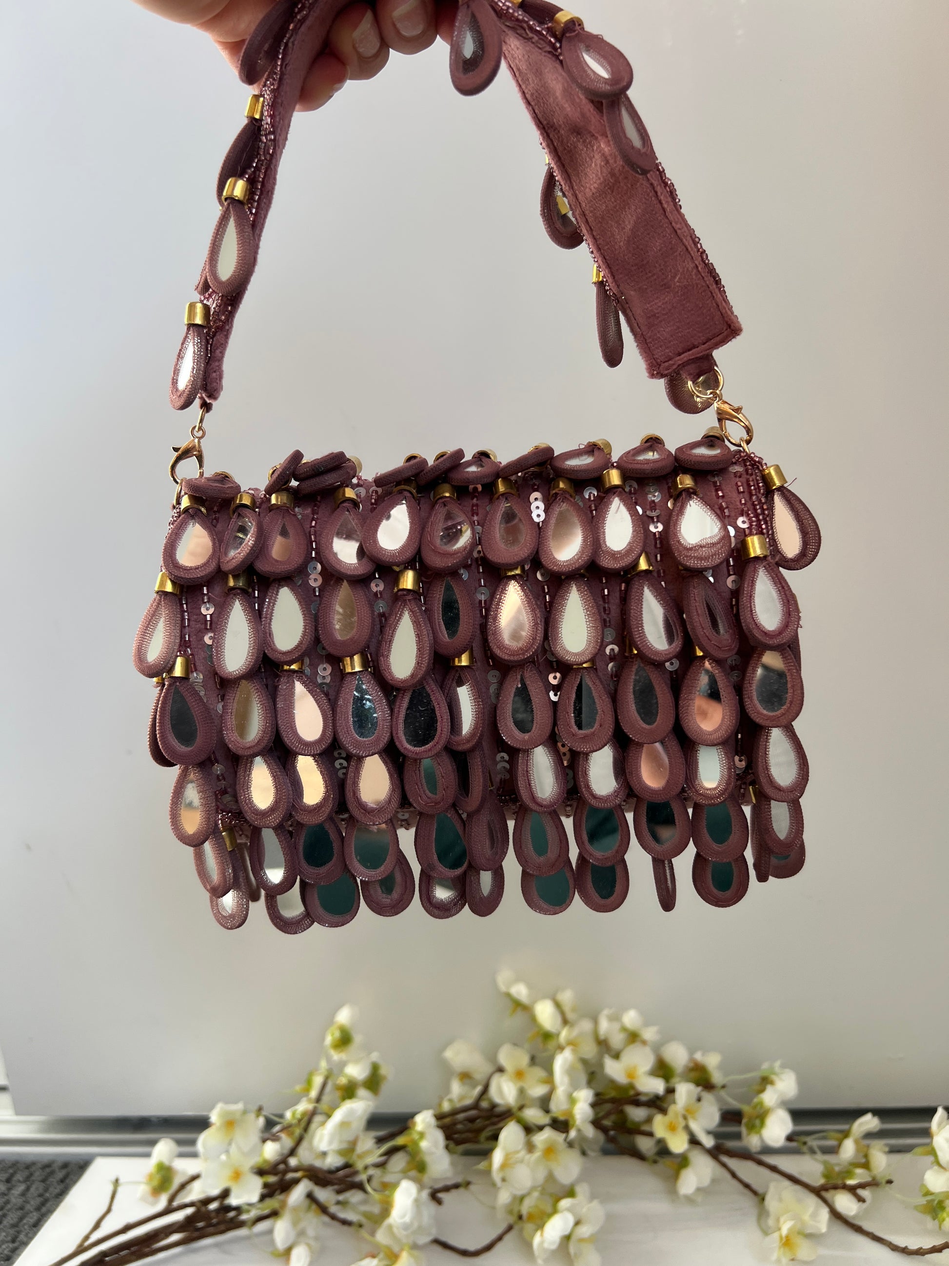 Crafted with shimmering genuine mirror drop accents, this show-stopping piece catches the light from every angle, turning heads wherever you go. The real mirrors aren't just for show — they create a dazzling, reflective finish that’s both playful and luxe.