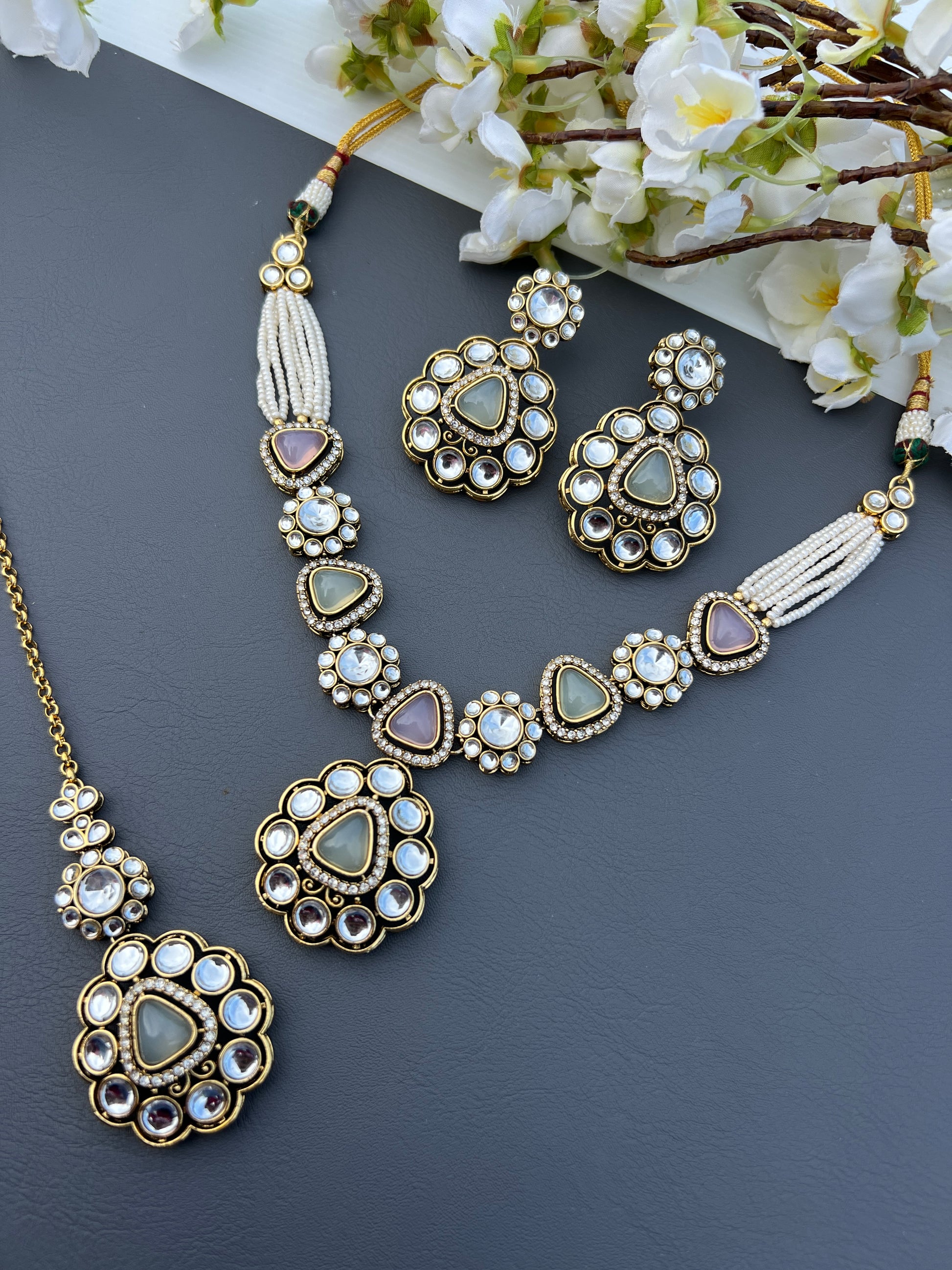 Perfect for weddings, festivals, or special occasions, this statement jewelry set effortlessly combines heritage-inspired design with contemporary elegance. Add a touch of sophistication and grace to your jewelry collection with this classic yet captivating piece—a true fusion of tradition and modernity.